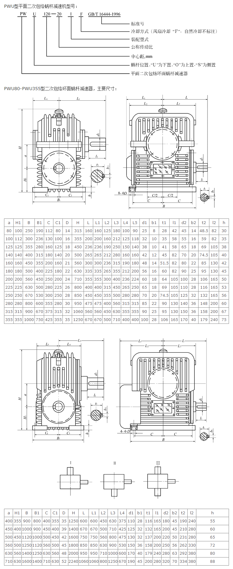 PWU型平面二次包絡蝸桿減速機是以一個平面為母面,通過相圓周運動,包絡出環面蝸桿的齒面,再以蝸桿的齒面為母面,通過相對運動包絡出蝸輪的齒面。PWU型平面二次包絡蝸桿減速機主要型號:PWU80、PWU100、PWU125、PWU140、PWU160、PWU180、PWU200、PWU225、PWU250、PWU280、 PWU315、PWU355、 PWU400、PWU450、PWU500、PWU560、PWU630、PWU710減速器。