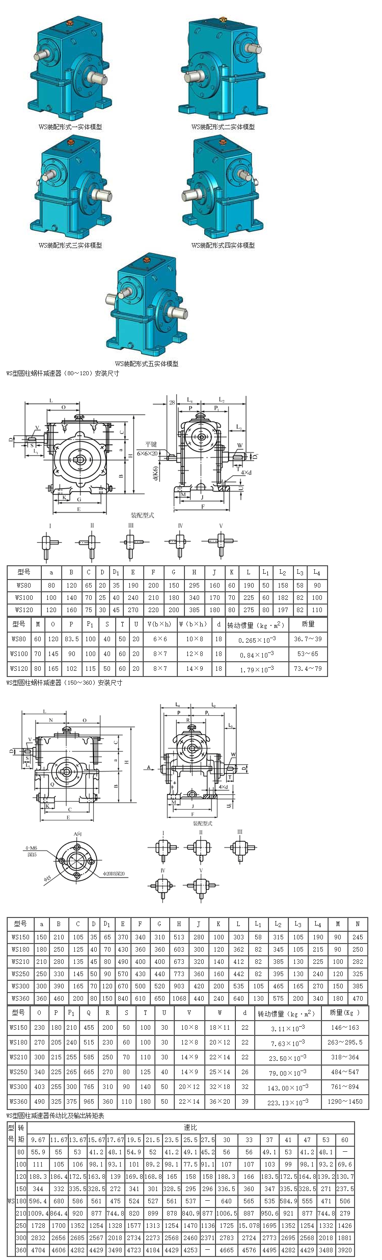 WS型圓柱蝸桿減速器適用范圍該標準為一級傳動的阿基米德圓柱蝸桿減速器;WS(蝸桿上置)WD(蝸桿下置)。(蝸阿基米德圓柱蝸桿減速器適用于蝸桿嚙合處滑動速度不大于7.5m/s;蝸桿速度不超過1500r/min;工作環境溫度為-40~+40℃;并可正、反方向運轉的場合。