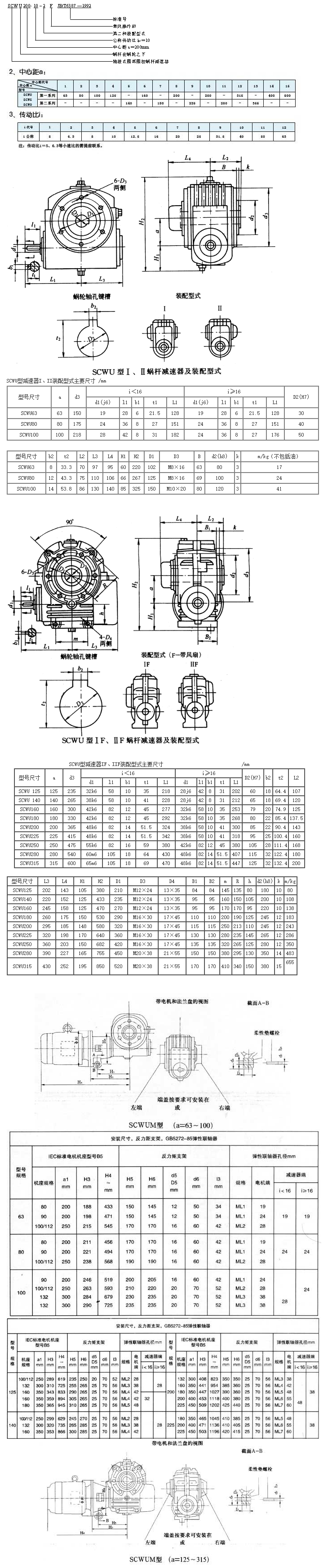 (1)SCWU 型—蝸桿在蝸輪之下型;